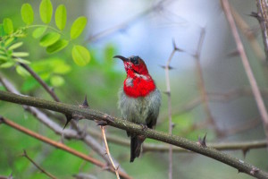 Aethopyga siparaja, commonly known as the Crimson Sunbird, is one of the most vibrant bird species recorded in the Great Himalayan National Park (GHNP). Characterized by its brilliant crimson plumage,
