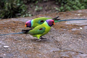 Psittacula cyanocephala, commonly known as the Plum-headed Parakeet, is a vividly colored parrot species found in the lower elevation forests of the Great Himalayan National Park (GHNP). Its distincti