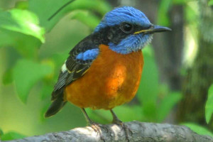 Monticola cinclorhynchus, known as the Blue-capped Rock Thrush, is a stunning migratory bird found within the scenic landscapes of the Great Himalayan National Park (GHNP). Characterized by the maleâ€