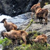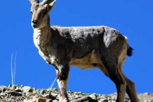 The Himalayan Ibex (Capra sibirica) is one of the most iconic wild mountain goats found in the high-altitude regions of the Great Himalayan National Park (GHNP). Known for its striking appearance and