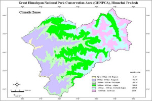 Map Depicting the Various Climate Zone in GHNP Overview The climatic zones in GHNP (Great Himalayan National Park) reflect the park’s rich ecological range shaped by altitude and terrain. Located in