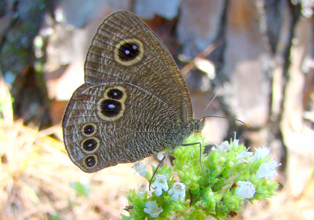 | Description | It has upper side brown, both fore and hind wing with terminal margins much darker, and generally with more or less distinct sub-basal and discal dark bands. Fore wing with a large, slightly oblique, oval, bi-pupilled, yellow-ringed black, pre-apical ocellus. Hind wing with two postdiscal, round, uni-pupilled, similar but smaller ocelli, and very often one or two minute tornal ocelli also. Underside similar to the underside in Ypthima philomela but the ochraceous-white ground-colour paler, tin-transverse brown strice coarser, the ocelli on the hind wing more distinctly in echelon, two tornal, two median, and two pre-apical, and on both fore and hind wing more or less distinctly defined, sub basal, discal and sub terminal brown transverse bands. Female: Differs on the upper side in having the area surrounding or bordering the ocelli on both fore and hind wing paler, closely irrorated with brown striae, the discal transverse band generally clearly defined, and very often both the tornal, and at least one of the apical, ocelli distinct. On the underside it is paler than the male, and has the sub basal, discal and sub terminal transverse dark bands more clearly defined. Dry season form: Males and females: Upper side very similar to the above, paler; in the female often the ground-colour ochraceous white, closely irrorated with brown striae ; ocelli as in the wet-season form, but those on the hind wing often non-pupilled. Underside also paler than in the wet-season form, the sub basal, discal and sub terminal bands on the whole more prominent; ocelli on the hind wing reduced to mere specks. |