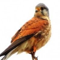 | Description | A small slender falcon, brick red above with grey head; light buff below with brown spearhead spots. In flight the pointed black wings and rounded grey tail with broad black terminal band are useful clues to identification. Female rufous above, including head, cross-barred with blackish. Singly, in open country, perched on stake or hovering |