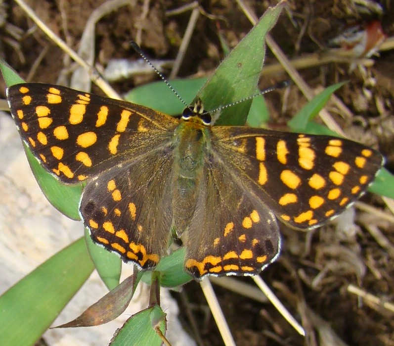Male Upper side vandyke-brown, spotted and marked with ochra-ceous and black as follows: Fore wing has a transverse band crossing the middle of the cell, continued to vein 1; a similar band at apex of cell continued below as a round spot in interspace 2 and a transverse spot in interspace 1; a macular similar band beyond apex of cell; three upper discal spots in interspaces 3, 6 and 8, followed by a sinuous transverse inner subterminal series of small spots and an outer subterminal series of transversely linear spots. A common butterfly of GHNP having wingspan 30-40mm. It is commonly seen in an altitudinal range of 760-2400m and more common at lower altitudes in warm forested valleys. It is not very fond of flowers. The under hind wings having two small spots near apex, a characteristic shared by other punches. The sexes are alike. |