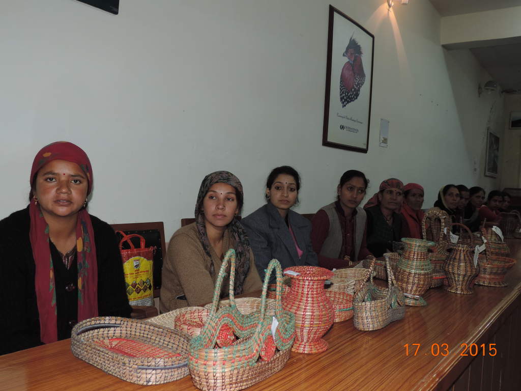 Hemp fibre has traditionally been used by villagers for local requirements. WSCGs now also make crafts and souvenirs from the material, which are sold in shops and at local fairs and exhibitions. 15 selected groups were given training for handloom, like shawl & pattu making. Also women of the group knit socks, globes etc for winter sales.