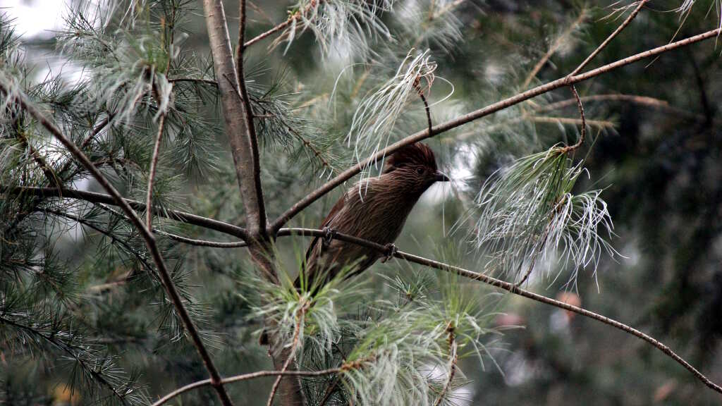 | Description | Crested appearance, white streaking on head and body, stout black bill. Resident and commonly found in Broadleaved forest at an altitudinal range 1200-2700m. |