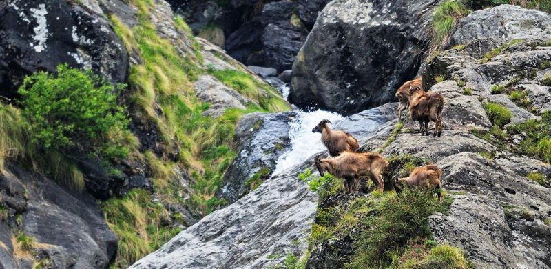 In GHNP, Himalayan tahrs are typically found between elevations of 2,500 to 5,000 meters. They prefer steep, rocky slopes and cliff faces where they can escape predators with agile climbing. These habitats provide both safety and access to alpine grasses, shrubs, and herbs—core components of their diet.