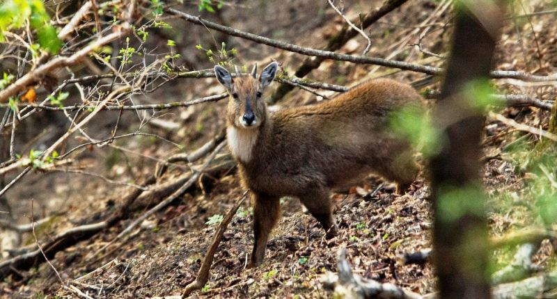 The Himalayan Brown Goral has a sturdy build, brownish-grey fur with a darker dorsal stripe, and short, backward-curving horns. Weighing around 35–40 kg, it blends seamlessly into its rocky environment, making it difficult to spot. These animals are typically crepuscular—most active during dawn and dusk—and are usually seen alone or in small groups.