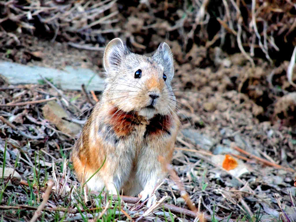 | Behavior | It does not burrow but moves underground through existing burrow systems in rocky and scree slopes.  It constructs hay piles, hoards limited food for winter and is  crepuscular. |