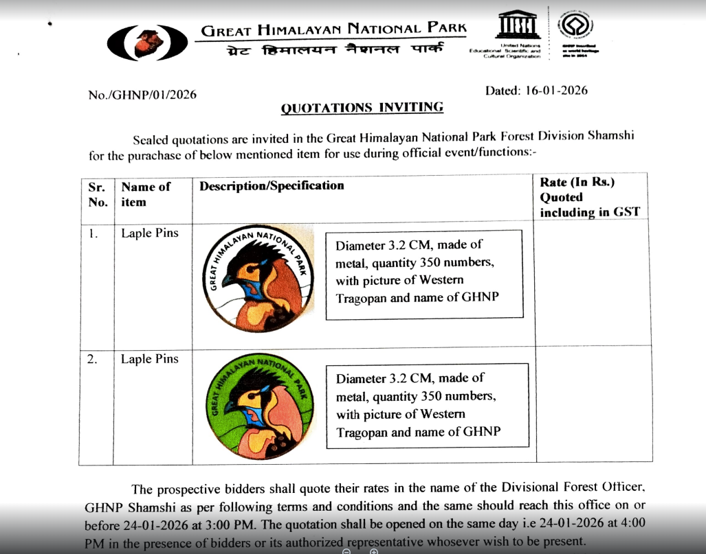 Content on this website is published and managed by Great Himalayan National Park Authorities. For any query regarding this website, please contact the Web Information Manager.