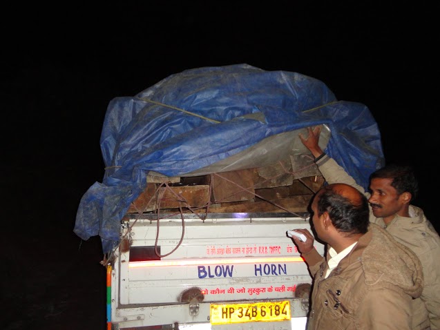 Protection of natural resources, particularly which are in the close vicinity of the human habitation, has been put on the top of the mandates in the management of the National Park by the authorities. To ensure it, the park authorities conduct regular and surprise patrolling and checking of vehicles coming from or passing through the park / eco-zone areas. While conducting such a patrolling near Ropa Complex by the team of forest officers including Sh. Dinesh Kumar, Range Officer, Sainj WL Range, Sh. Narotam, Deputy Ranger and Sh. Vinay Kumar, Forest Guards under the leadership of Dr. Kirupasankar, M. IFS DFO GHNP on midnight of 3rd Dec. 2015, a Mahindra Bolero Pick-up vehicle escorted by another private Alto car, coming from Village Shanghar has not stopped for checking. The team rushed immediately behind both the vehicles and stopped the suspicious vehicle after 3 Km of chasing near Matla Nallah. The driver and other persons managed to escape from the scene having the advantage of night hour.