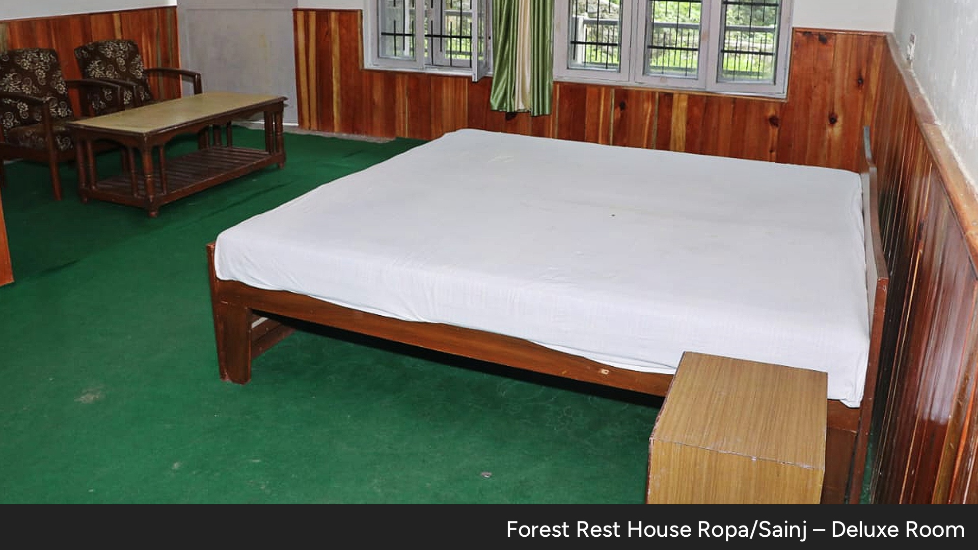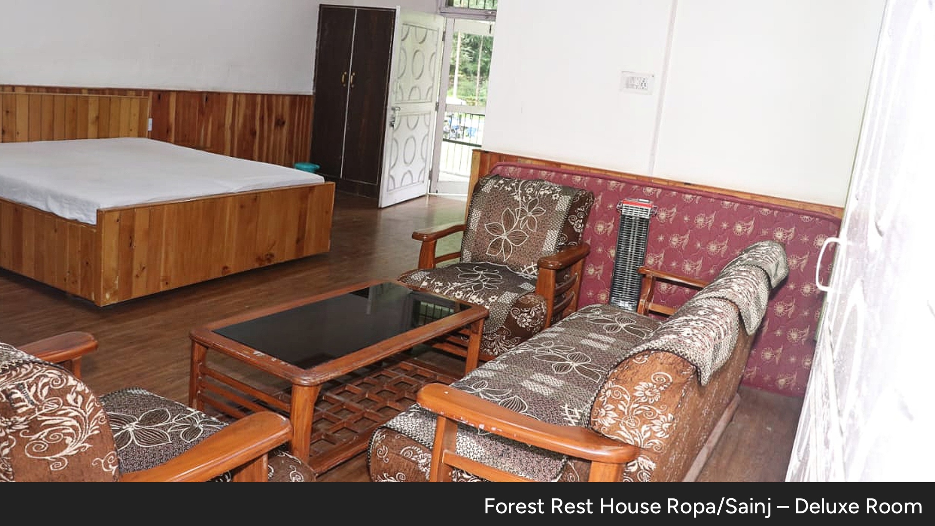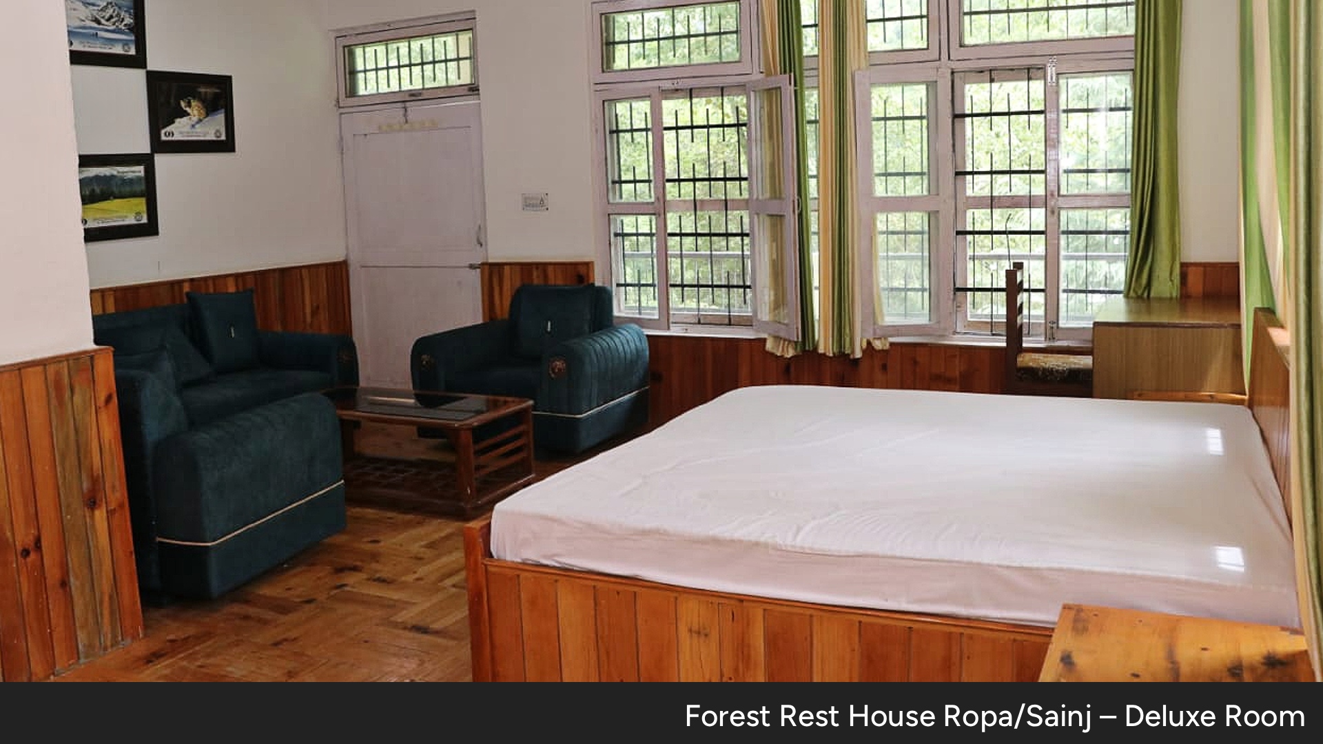 Experiences and Surroundings: Staying at the Forest Rest House Ropa / Sainj puts you right at the heart of nature. The gentle sound of the Sainj River, the crisp mountain air, and the panoramic views of the surrounding valleys create a setting perfect for relaxation and rejuvenation. The area is home to a variety of flora and fauna, and birdwatchers often find the location rewarding.