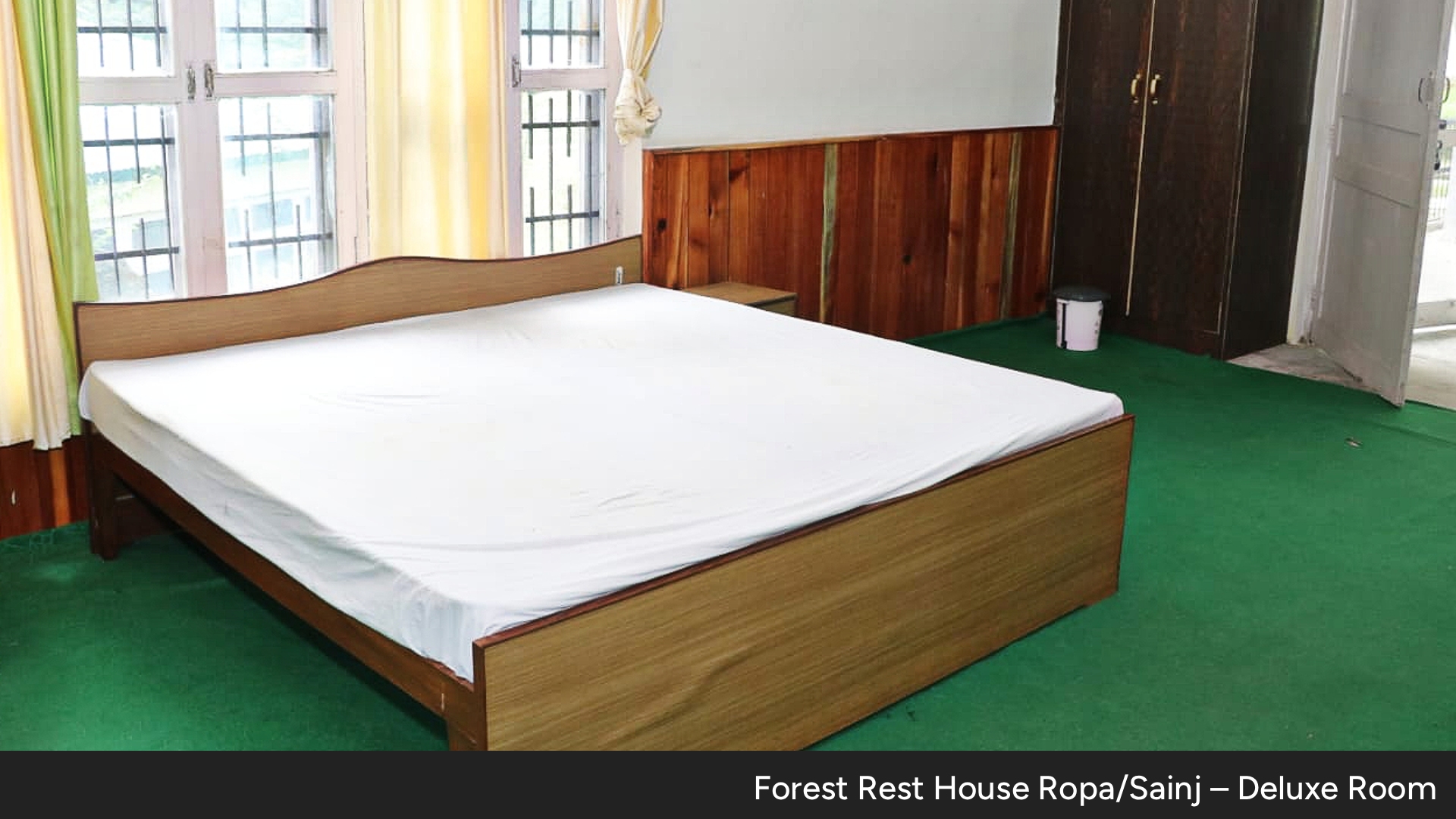 Accommodation at Forest Rest House Ropa: The rest house offers 5 well-maintained Deluxe Rooms that combine basic comforts with the charm of a forest lodge. Each room is designed to provide a peaceful stay after a day of trekking or sightseeing. For larger groups or budget travelers, there are two spacious dormitories with 10 beds each, making it a cost-effective option without compromising on location.
