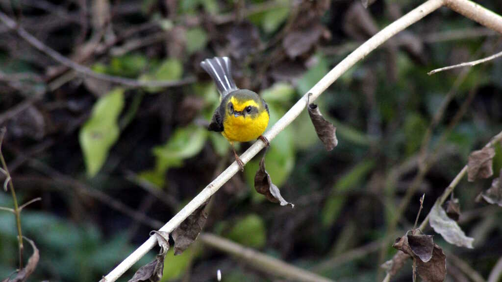 In GHNP, the Yellow-bellied Fantail is typically found between 1,800 and 3,200 meters above sea level, favoring broadleaf and mixed forests, often near streams or damp ravines. It is particularly common in Tirthan and Sainj valleys, where it flits actively through the understorey and mid-canopy levels, often joining mixed-species foraging flocks.